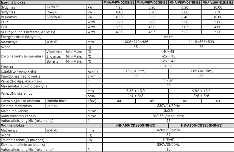 | Gallingumas | 10.0 kW, 12.1 kW, 14.5 kW, 15.9 kW, 4.2 kW, 6.35 kW, 8.4 kW |